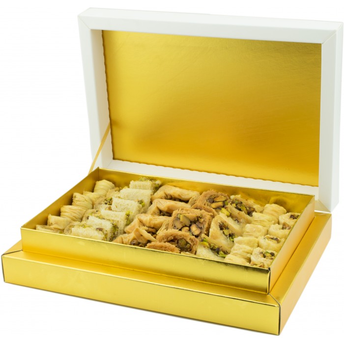 هم چنین جعبه های باقلوا با طراحی آماده نیز وجود دارند و شما می توانید از بین آن ها نیز انتخاب کنید.