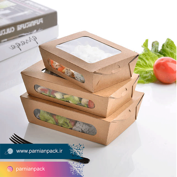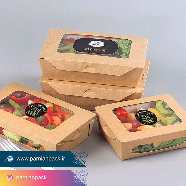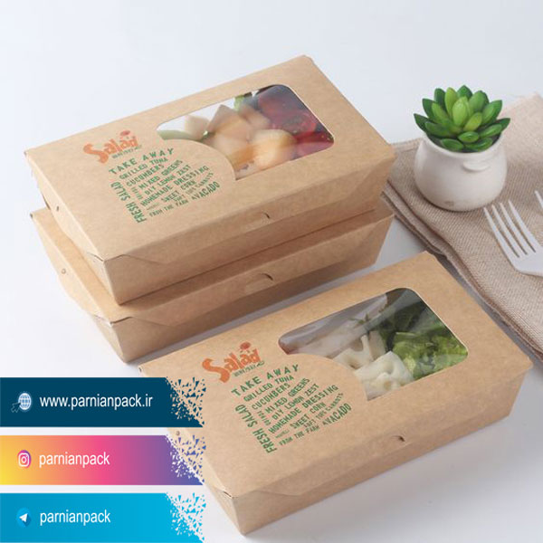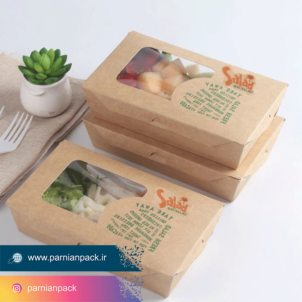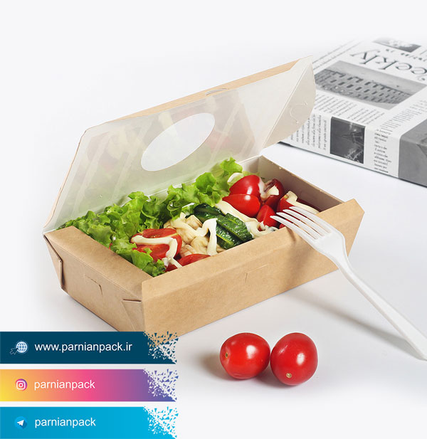 جعبه سالاد از انواع ظرف سالاد کاغذی است و یکی از جدیدترین ملزومات مصرفی در رستوران هایی است که به شکل ظاهری برند خود اهمیت می دهند و